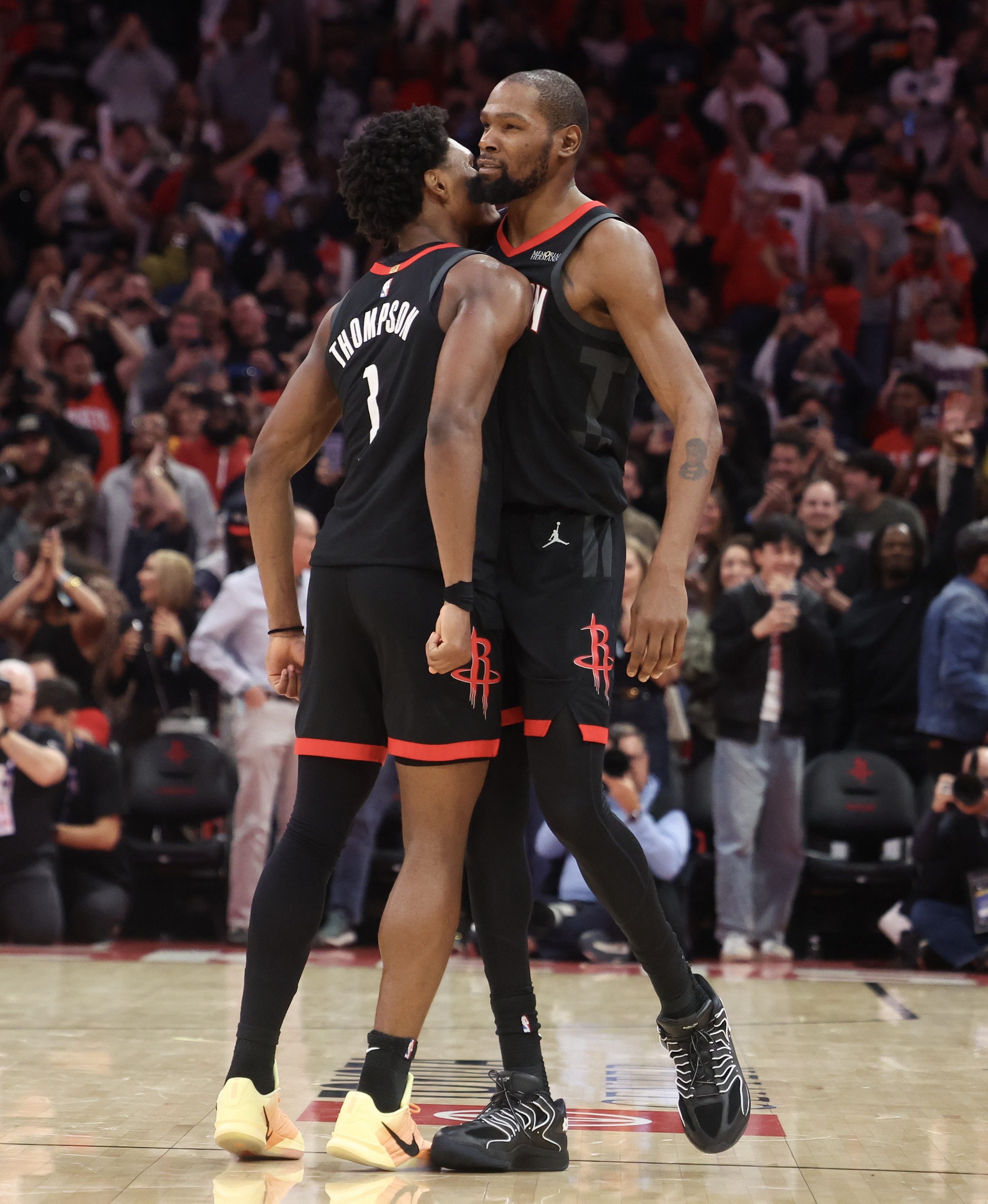 在比赛仅剩1.1秒时,杜兰特投中了一记决定胜负的关键进球,帮助火箭以100-97险胜太阳。当时,他在罗伊斯·奥尼尔的防守下接到边线发球,调整节奏运了两下球,随后冷静地干拔跳投出手,稳稳命中了这记关键远投。